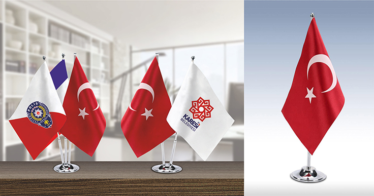 Masa bayrakları, hem resmi kurumlarda hem de özel kuruluşlarda sıklıkla kullanılan prestijli bir temsil aracıdır. Belediyeler, devlet kurumları, dernekler, vakıflar, okullar, özel şirketler ve siyasi partiler gibi birçok kurum, masa bayraklarını kimliklerini ve değerlerini yansıtmak için tercih etmektedir. Masa bayrakları, üzerinde bulunduğu ülkenin bayrağını, kurum logosunu veya kuruluşun simgesini taşıyarak bulunduğu ortamda güçlü bir kimlik ve aidiyet duygusu oluşturur. Resmî toplantılardan özel davetlere kadar pek çok alanda, kurumların prestijini ve ciddiyetini yansıtan önemli bir detaydır. Boyut ve Modeller • Tekli, ikili, üçlü veya isteğe göre daha farklı kombinasyonlarda üretilebilir. • Farklı masa düzenlerine ve kullanım alanlarına uygun ölçülerde hazırlanır. • Kurumsal ihtiyaçlara göre özel tasarımlar yapılabilir. Üretim Özellikleri • Masa bayrakları genellikle metal ayak ve direk ile desteklenir, bu sayede uzun ömürlü ve dayanıklı bir kullanım sağlar. • Saten kumaş kullanılarak üretilir; bu kumaş türü hem şık bir görünüm sunar hem de renklerin canlılığını korur. • Baskı aşamasında dijital baskı ve serigrafi teknikleri uygulanır. Bu yöntemler sayesinde bayrak üzerindeki renkler ve detaylar net, parlak ve uzun süre kalıcı olur. Kullanım Alanları • Resmi toplantılar ve protokol organizasyonları • Kurumsal ofisler ve toplantı salonları • Uluslararası etkinlikler ve fuarlar • Eğitim kurumları ve özel davetler Neden Masa Bayrakları? Masa bayrakları, bulunduğu ortamda hem estetik bir görünüm sağlar hem de temsil ettiği kurumun kimliğini ön plana çıkarır. Doğru tasarlanmış ve kaliteli malzemelerle üretilmiş masa bayrakları, kurumların profesyonelliğini ve saygınlığını yansıtan küçük ama etkili bir detaydır.