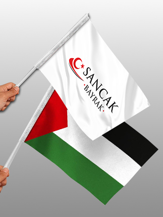 Elde sallama sopalı bayraklar, özellikle kalabalık etkinliklerde ve toplu organizasyonlarda tercih edilen en pratik bayrak türlerinden biridir. • Spor müsabakaları ve taraftar etkinlikleri • Resmi törenler, mitingler ve kutlamalar • Açılış, fuar ve tanıtım organizasyonları • Festival, konser ve özel gün etkinliklerinde kullanılır. Polyester raşel kumaş ve dayanıklı plastik soplarıyla uzun süre kullanıma uygundur. Türk Bayrakları için fabrikasyon raşel ve alpaka kumaş kullanılır. Kurum, siyasi parti, spor müsabakları gibi özel gün ve etkinliklerde ise kumaş üzeri dijital baskı tekniğiyle canlı ve solmaya karşı uzun ömürlüdür.